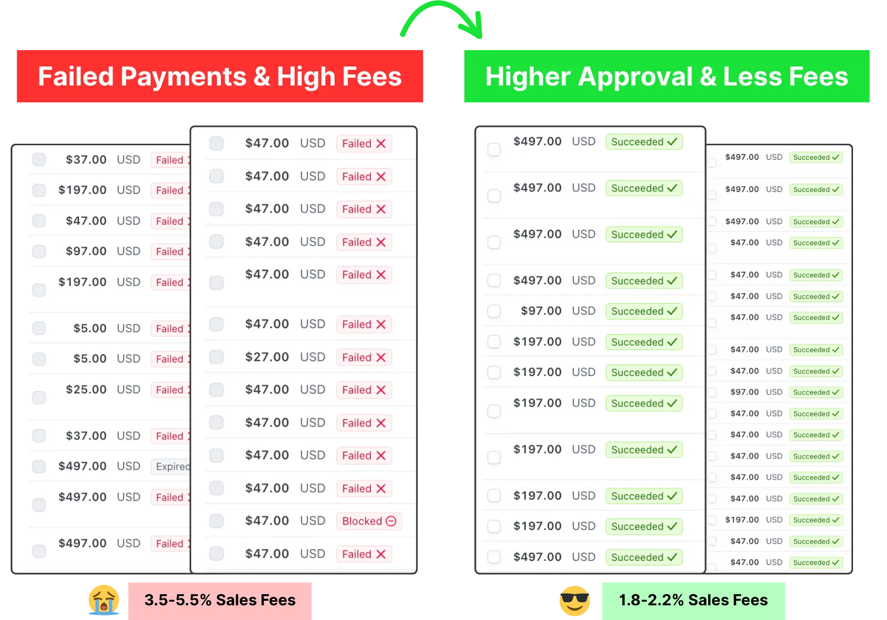In short: You get everything you need to switch from Stripe to a better, safer, cheaper processor — without tech stress or downtime.