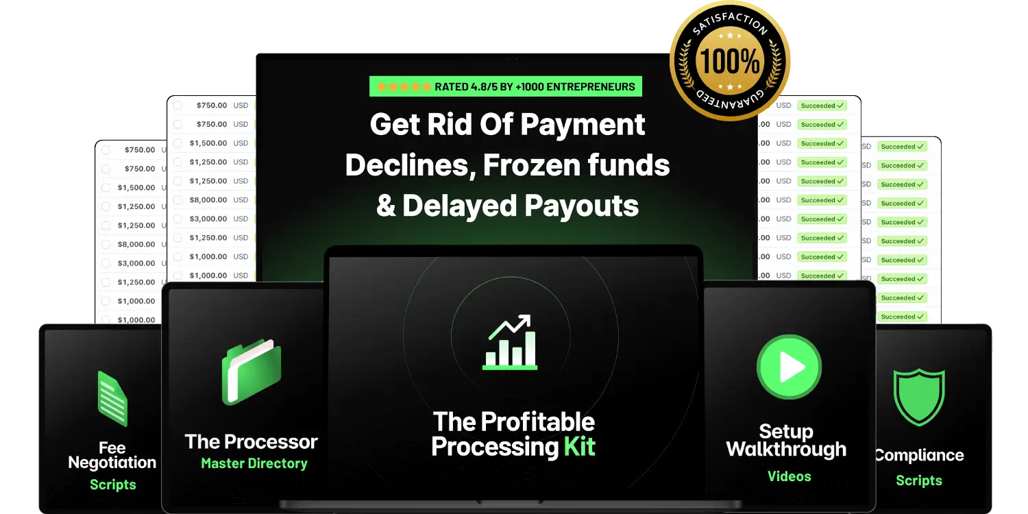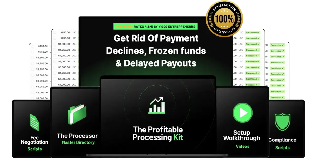 The Profitable Processing Kit is the go-to solution for online businesses that want faster payouts, lower fees, and zero account freezes.